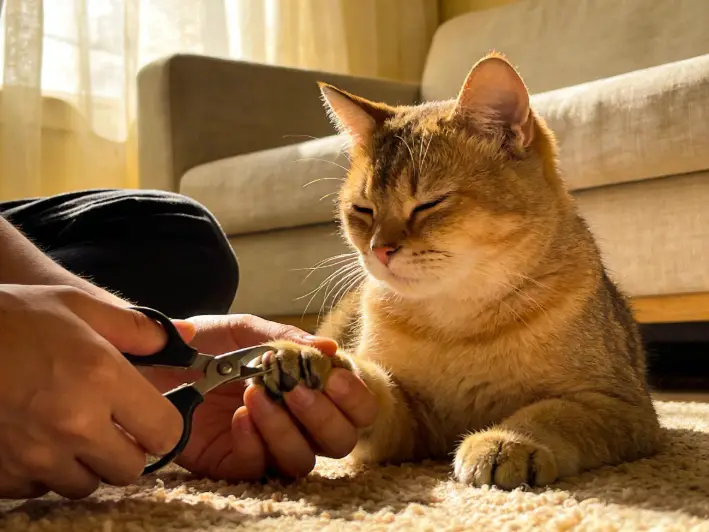 Trim nails every 2–3 weeks, only clipping the clear tip and avoiding the quick. Start young with positive reinforcement for easy tolerance.